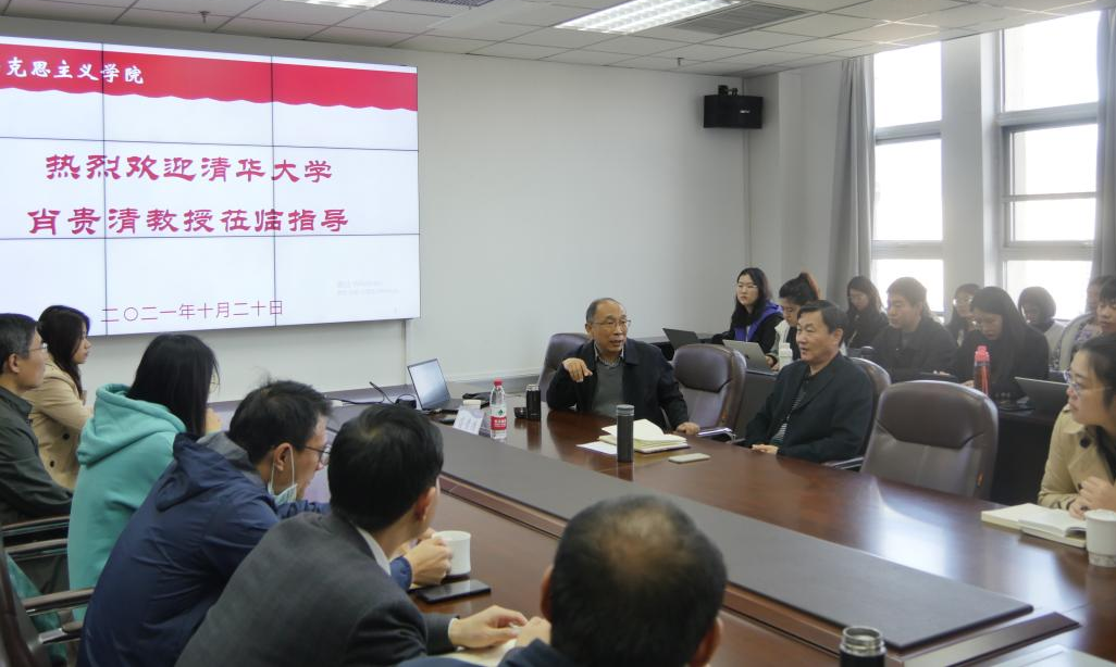 10月20日上午,清华大学习近平新时代中国特色社会主义思想研究院副院长肖贵清教授莅临ac米兰官网开展了以“新时代高校思想政治理论课的守正与创新”为主题的专题讲座,本次讲座由ac米兰官方中文网站院长袁本文主持。