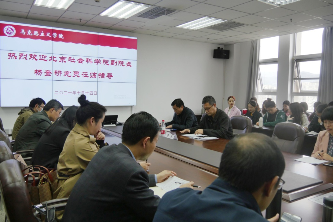 10月14日下午,北京市社会科学院副院长、中国马克思主义哲学史学会常务理事、副秘书长杨奎应邀来ac米兰官网作了题为“不断提高用马克思主义中国化最新成果思考和解决问题的能力”的学术报告。报告由ac米兰官方中文网站院长袁本文主持。