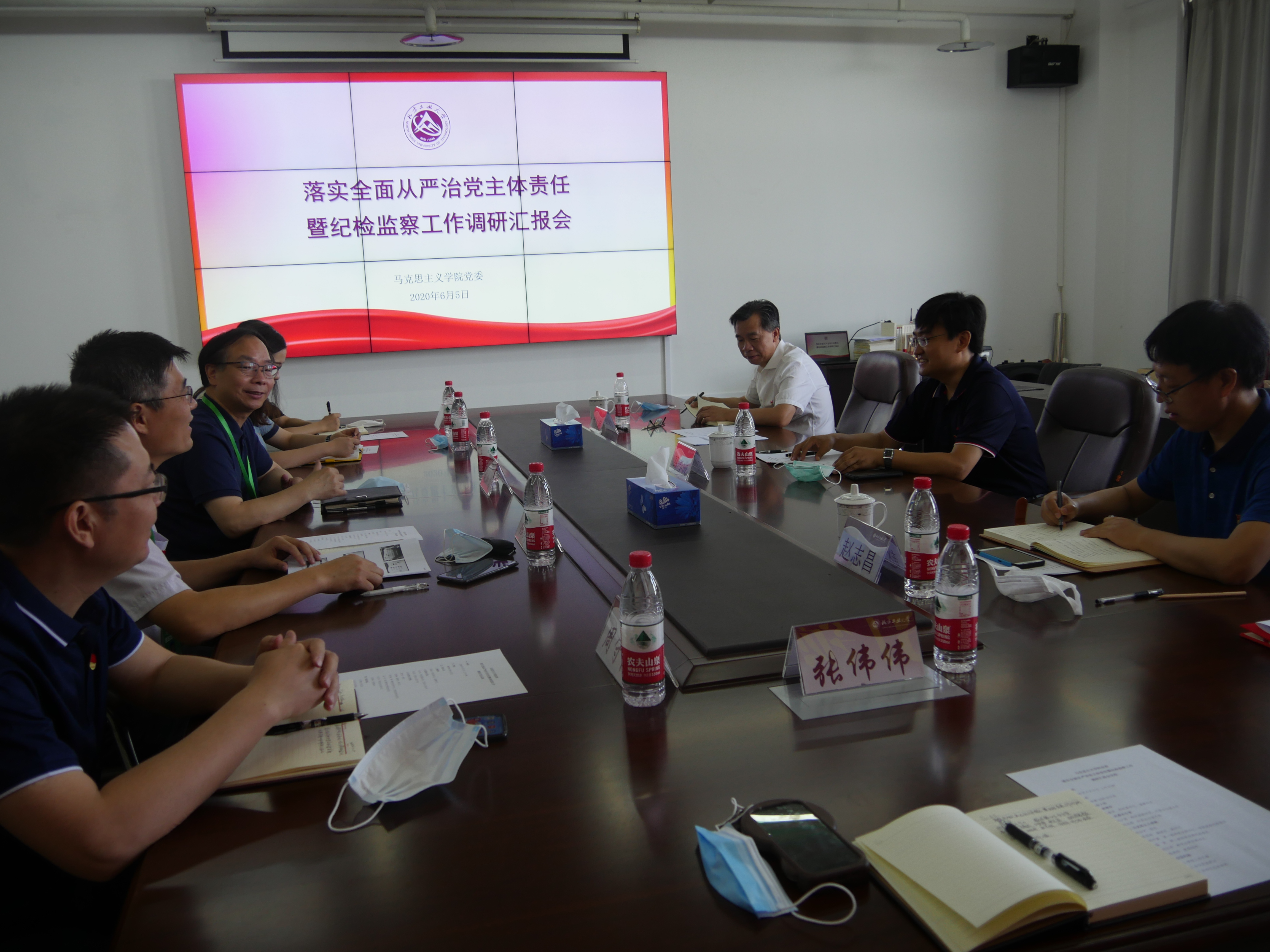 6月5日上午9点,以校纪委书记马春成为组长的校纪委工作组一行3人,就ac米兰官网履行全面从严治党主体责任暨纪检监察工作情况进行调研。院党委副书记张茂林主持汇报会。院长张加才,党委委员周守高、刘以沛,教师代表温泉出席汇报会。