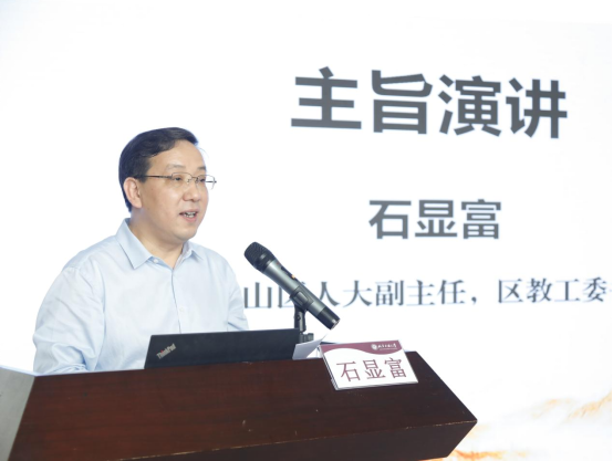 石景山区人大常委会副主任、区教工委书记石显富,大兴区教委德育科科长姜苗分别作主旨演讲。石显富就ac米兰官方中文网站一直以来对石景山区基础教育的支持表示感谢。他介绍了石景山区教育系统以北京市大中小幼一体化德育实践研究示范区建设为载体,构建横向融通、纵向衔接的幼小中高一体化联动体系,坚持守正创新、凝心聚力,全面提升各学段思政课课程建设与师资质量,强化学高从教、身正示范,全力打造高素质思政教师队伍等方面的做法与成效。姜苗分享了大兴区教育两委坚持党的全面领导,深入思考大思政课“为何一体化”“何为一体化”“如何一体化”等重大问题,党政齐抓共管,健全机制,打破壁垒,用党的创新理论不断推进“大思政课”一体化建设的有效经验。