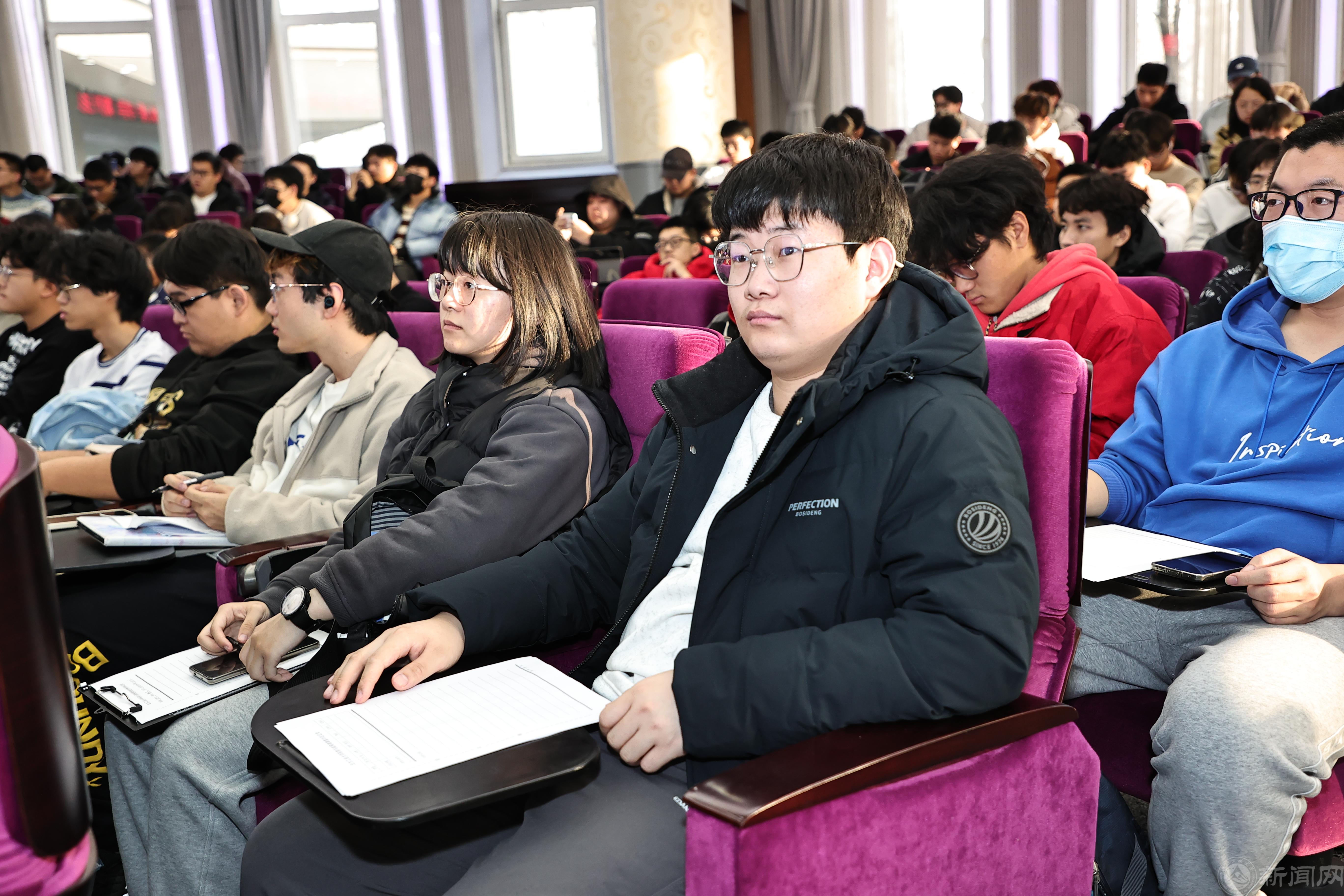 12月7日下午,校党委书记刘军在广学楼报告厅为电气与控制工程学院学生讲授题为《在强国建设中担使命献力量》的形势与政策课。