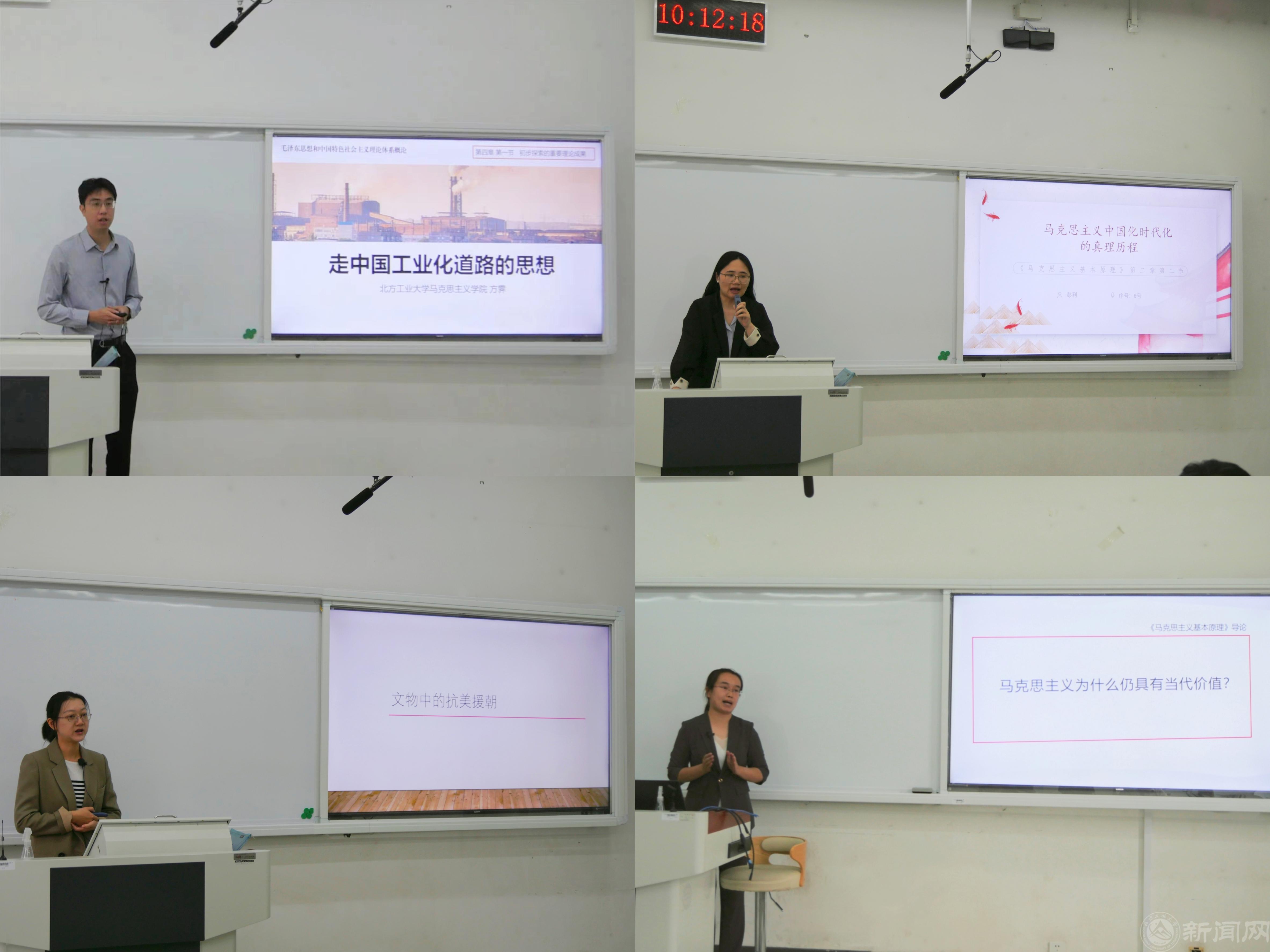 本次比赛特邀首都师范大学、北京建筑大学、北京信息科技大学的同行专家,以及ac米兰官方中文网站教授袁本文、学校思政课教学督导员王包泉共同担任评委。共有8位青年教师分别围绕“习近平新时代中国特色社会主义思想概论”“思想道德与法治”“中国近现代史纲要”“马克思主义基本原理”“毛泽东思想和中国特色社会主义理论体系概论”等课程内容,结合教学的重难点与学生关切,进行了精彩的教学展示。
