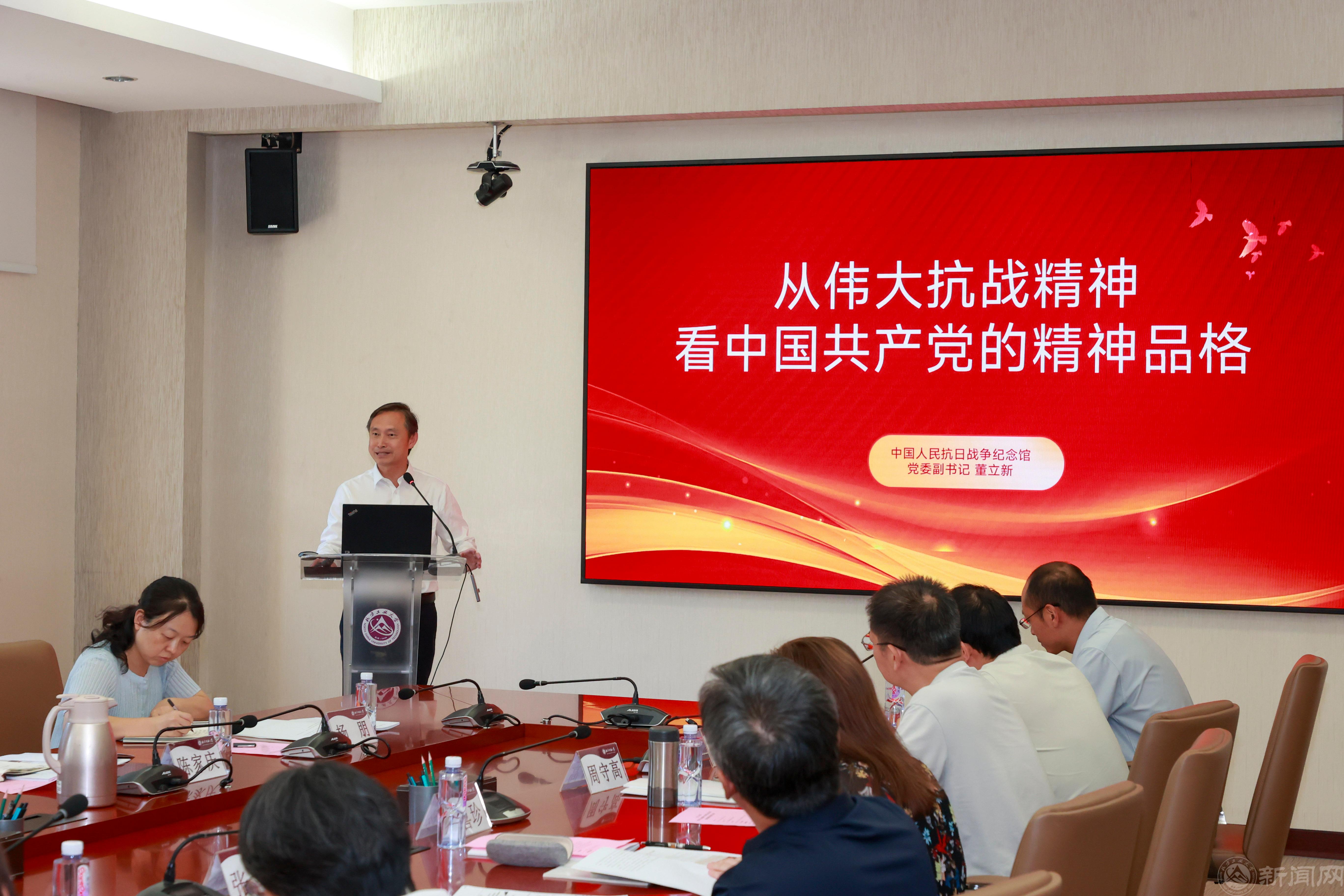 中国人民抗日战争纪念馆党委副书记董立新作为本次备课会特邀专家,做了“从伟大抗战精神看中国共产党的精神品格”主题报告。报告中,他从三个维度深刻展开论述:一是深入剖析了伟大抗战精神是中国共产党与中国人民共同珍贵的精神财富;二是生动展现了伟大抗战精神所彰显的中国共产党人独特的精神品格;三是深刻揭示了中国共产党精神品格对铸就伟大抗战精神的重要作用。此外,他还就如何运用伟大抗战精神开展高校思政教育、实现育人目标提出了富有前瞻性和实操性的建议。