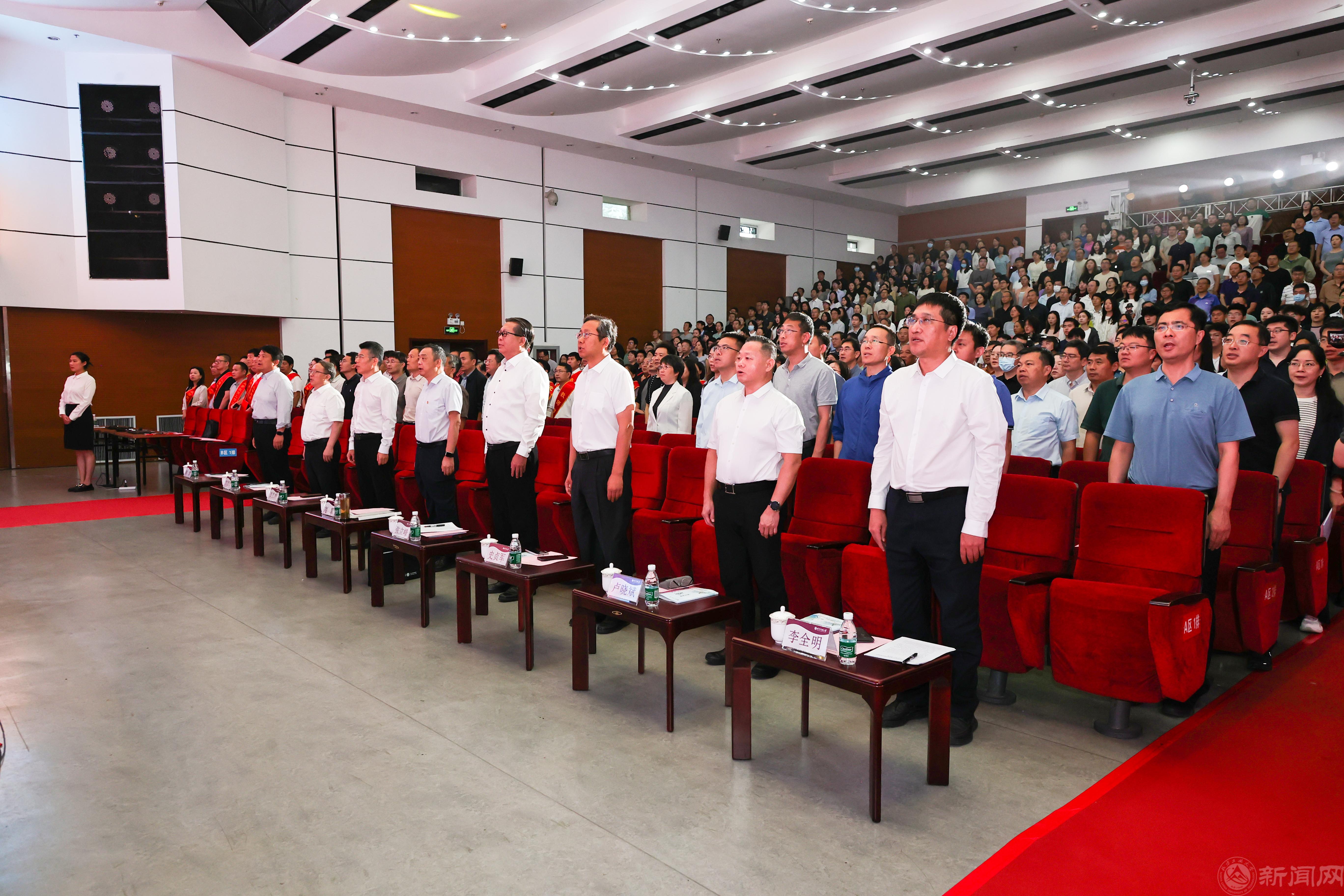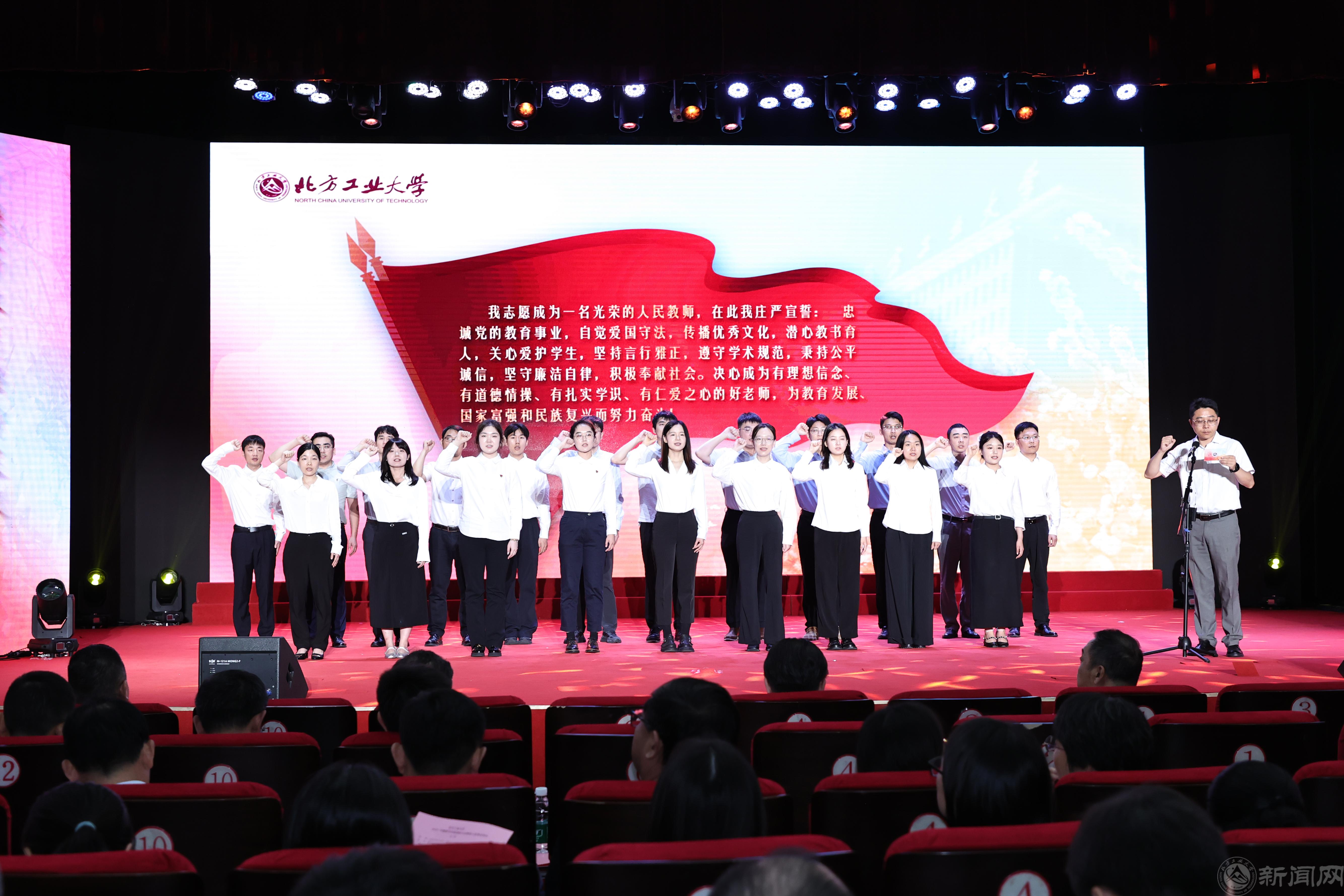 在新入职教师宣誓仪式上,21名新入职教师代表在科学技术研究院副院长张晓光的带领下,郑重许下忠诚党的教育事业、潜心教书育人的誓言。