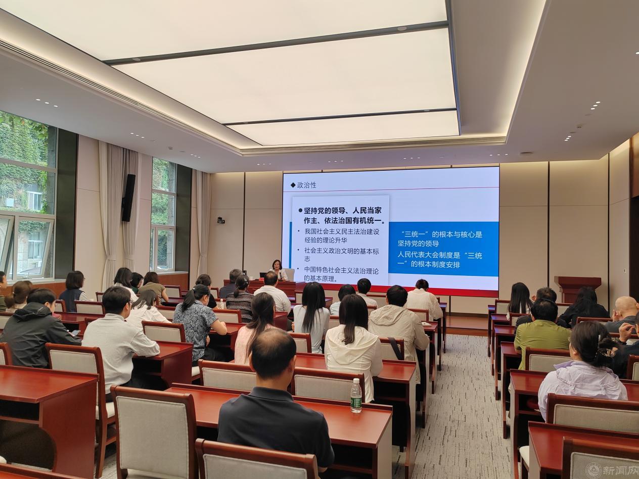 本次学习活动以沉浸式研学与理论教学相结合的形式展开。在理论教学环节,北京市委党校周悦丽教授以“深入学习习近平法治思想 建设法治中国首善之区”为主题,重点讲授了“坚持党对全面依法治国的领导”“坚持以人民为中心”“坚持中国特色社会主义法治道路”等重要内容,并就如何将法治思想融入思政课教学、提升学生法治素养提出了具体建议。