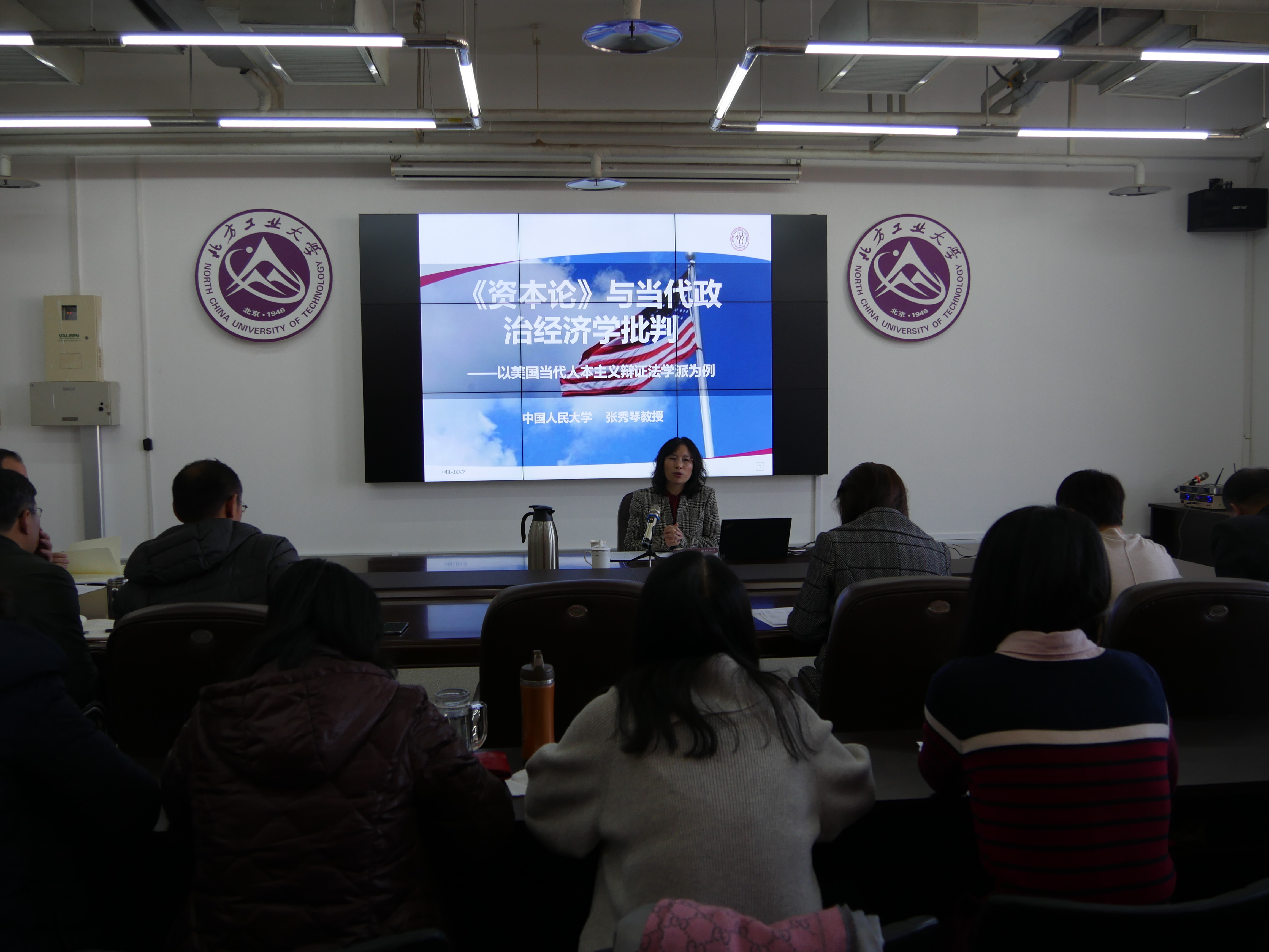 本次讲座中,张秀琴教授主要对以莫伊舍·波斯顿、柏特尔·奥尔曼、弗雷德里克·詹姆逊、大卫·哈维等人为代表的人本主义辩证法学派的论著进行了探讨。她指出,21世纪以来的美国马克思思想研究界,存在着一个明显的转向,即由过去偏重经验实证分析范式向倚重哲学,特别是辩证法路径的转变。这一点体现于他们基于对《资本论》的解读而掀起的对当代政治经济学批判的研究之中。因而,她从两个方面进行了具体阐述,一是当代美国人本主义辩证法学派一般都是基于自然与历史之间的第三条路线,认为辩证法即是历史具体性原则。二是当代美国人本主义辩证法研究学者开始重建马克思主义辩证法的功能,其主要内容就是以政治经济学批判分析为内核的文化研究和以《资本论》探讨为依据的社会批判,并在此基础上试图重建马克思主义辩证法在当代的政治实践旨趣。