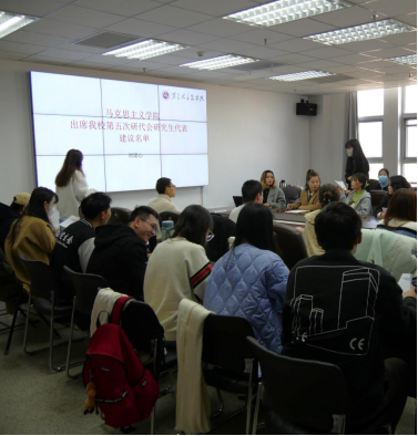 大会就第五次研究生代表大会的代表候选人情况作出介绍,并进行了讨论。讨论结束后,参会人员进行投票,由计票人统计后公布结果。最终宣布由刘珺心同学当选研究生代表。